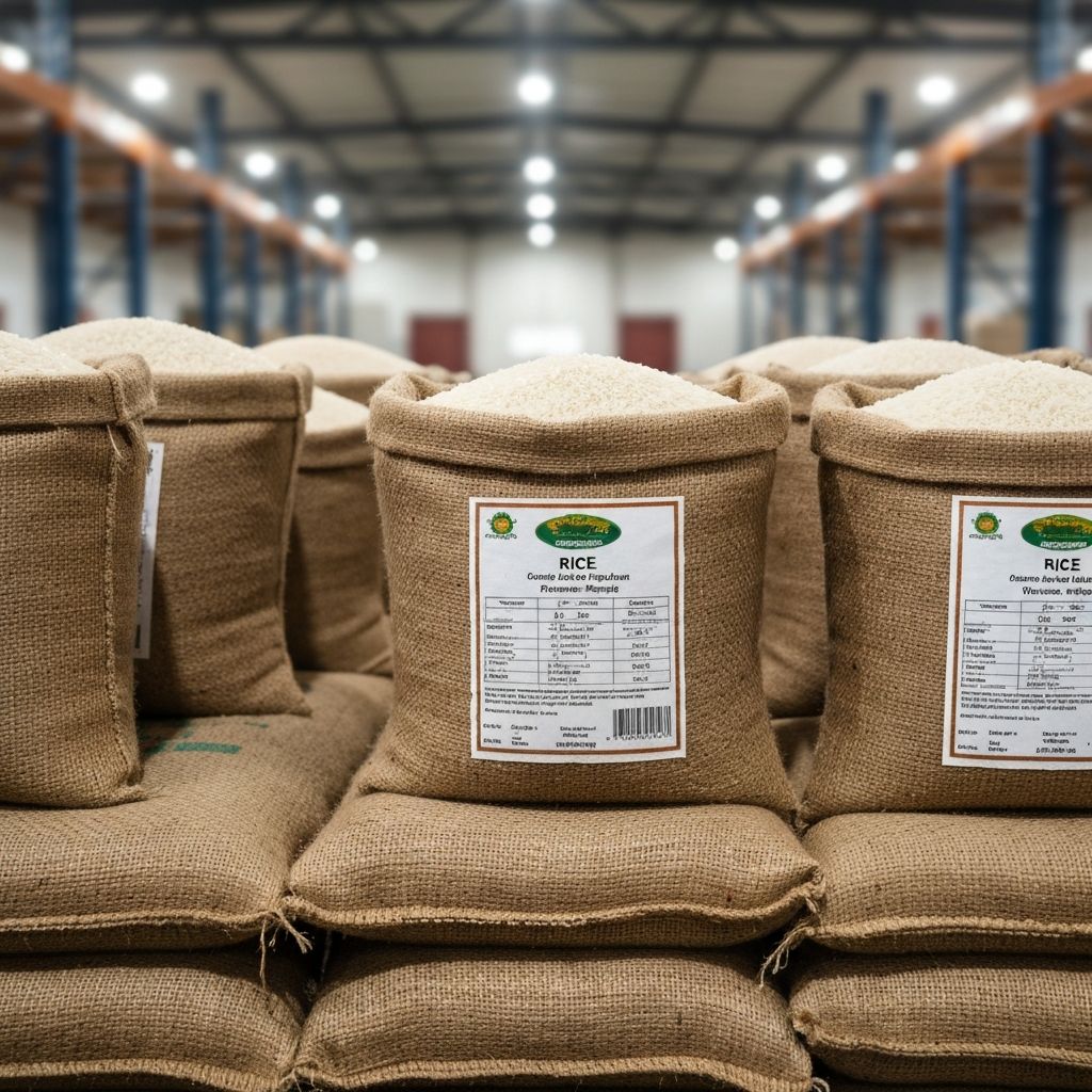 Arroz blanco pulido, empacado en sacos de 50kg